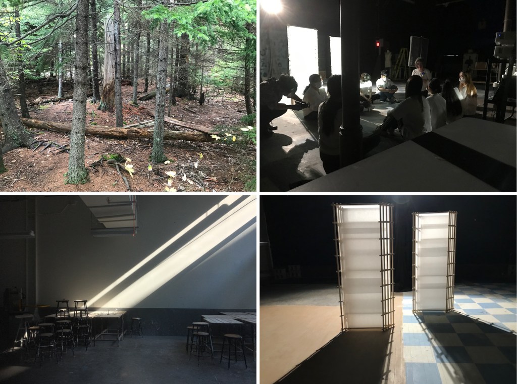 이 작품을 제작하면서 제가 있는 장소(캐나다 노바스코샤)와 오브제에 영사된 장소(한국)를 연결하고 싶었습니다. 영사 스크린의 레이어는 기록된 영상을 파편화 및 공간화되었으며 이는 포플러 숲속을 걷는 개인적인 경험을 바탕으로 결정한 것입니다. 어린나무들의 군락을 발견했을 때, 저는 나무들에게 먼저 허락을 구한 뒤 군락의 공간적 그룹화를 기록했습니다. 첫 번째 작은 나무에 줄을 감고 간단한 매듭을 묶은 후 옆에 있는 나무에 줄을 연결하는 반복적인 작업을 통해 군락을 측정했습니다. 그런 다음 나무를 감고 있던 줄을 풀고 감사 인사를 한 후, 다음 군락을 찾을 때까지 계속 걸었습니다. 지도는 기본적으로 이 과정을 통해 만들어졌습니다. 어린나무 군락의 둘레는 구조물 내에서 그림자 효과를 만들어 내고, 나무와 나무 사이의 거리는 구조물과 구조물 사이의 거리를 정했습니다. 이 공간 기록의 시각화된 이미지는 영사된 빛의 조각과 상호작용하며, 풍경, 문화 및 살아있는 역사 간의 대화를 구성하게 됩니다.